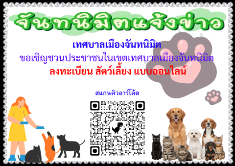 ขอเชิญชวนประชาชนในเขตเทศบาลเมืองจันทนิมิต ลงทะเบียน สัตว์เลี้ยง แบบออนไลน์