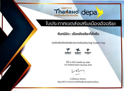 เทศบาลเมืองจันทนิมิตรับมอบประกาศนียบัตรเขตส่งเสริมเมืองอัจฉริยะ