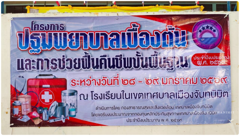 วันพุธที่ 28 มกราคม พ.ศ. 2569 เวลา 08.30-12.00 น. ณ โรงเรียนวัดจันทนาราม (ศรีรองเมืองอุทิศ) เทศบาลเมืองจันทนิมิต จัดโครงการปฐมพยาบาลเบื้องต้นและการช่วยฟื้นคืนชีพขั้นพื้นฐาน ประจำปีงบประมาณ 2569