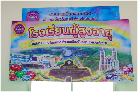 นายคมจักร ถาวรวิริยะนันท์ นายกเทศมนตรีเมืองจันทนิมิต มอบหมายให้ นายวิชัย สุวรรณธนชัย ประธานสภาเทศบาลเมืองจันทนิมิต พร้อมด้วย สมาชิกสภาเทศบาล และหัวหน้าส่วนการงานเทศบาลเมืองจันทนิมิต ดูแลอำนวยความสะดวก ให้กับผู้เข้าเรียน หลังจาก ช่วงเช้า ผู้เรียน ได้ทำกิจกรรมหน้าเสาธงแล้ว ก็เป็นกิจกรรมสันทนาการ และการสอนหลักปรัชญาเศรษฐกิจพอเพียง ส่วนในภาคบ่าย ผู้เรียน ก็จะได้รับความรู้เกี่ยวกับ การนวดแผนไทย ธรรมชาติบำบัด ซึ่งทุกกลุ่มรายวิชา จะเน้นให้ผู้เรียน สามารถนำปรับไปใช้ที่บ้านได้ เพื่อพัฒนาคุณภาพชีวิตผู้สูงอายุให้ดีขึ้น โดยวิทยากรอาจารย์ผู้สอน ที่มากด้วยความรู้ และประสบการณ์ มาถ่ายทอดความรู้ให้กับผู้เรียน