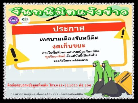 เทศบาลฯ งดเก็บขยะทุกวันอาทิตย์
