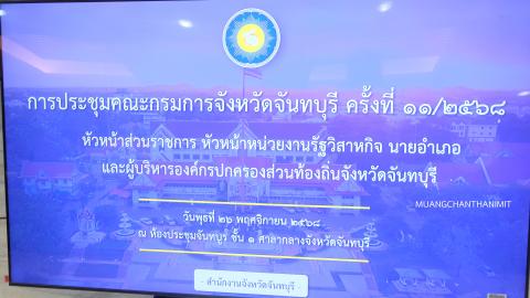 โดยมีนายมนต์สิทธิ์ ไพศาลธนวัฒน์ ผู้ว่าราชการจังหวัดจันทบุรี เป็นประธานการประชุมคณะกรมการจังหวัด หัวหน้าส่วนราชการ นายอำเภอ และหัวหน้าหน่วยงานประจำจังหวัด ครั้งที่ 11/2568 ประจำเดือนพฤศจิกายน พร้อมด้วย หัวหน้าส่วนราชการ หัวหน้าหน่วยงานรัฐวิสาหกิจ นายอำเภอ และผู้บริหารองค์กรปกครองส่วนท้องถิ่น เข้าร่วมประชุมโดยพร้อมเพียงกัน